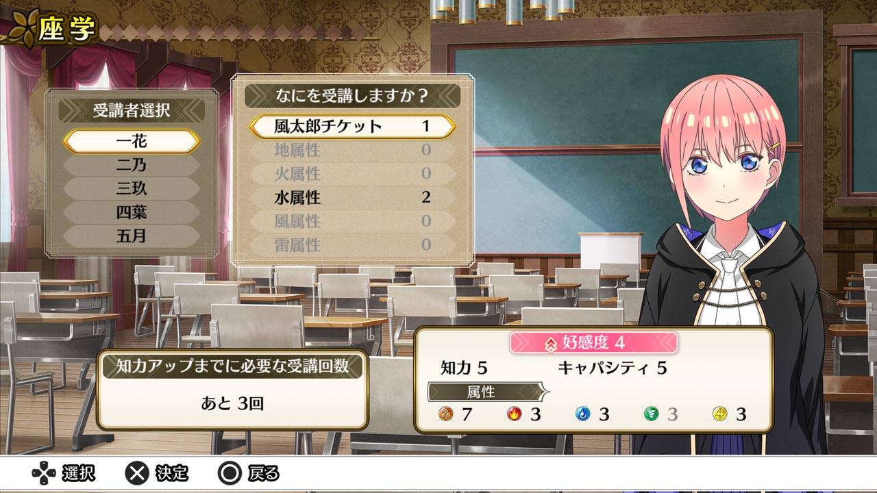 キャラクターごとに育成をします。パラメータの上昇、魔法の杖のカスタマイズ、アイテム合成などが行えます。
